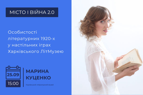 Speaker: Maryna Kutsenko, PhD in Philology, Head of the Scientific and Educational Department at the Kharkiv Literary Museum, curator of the 1920s collection, and author of the museum’s tabletop games