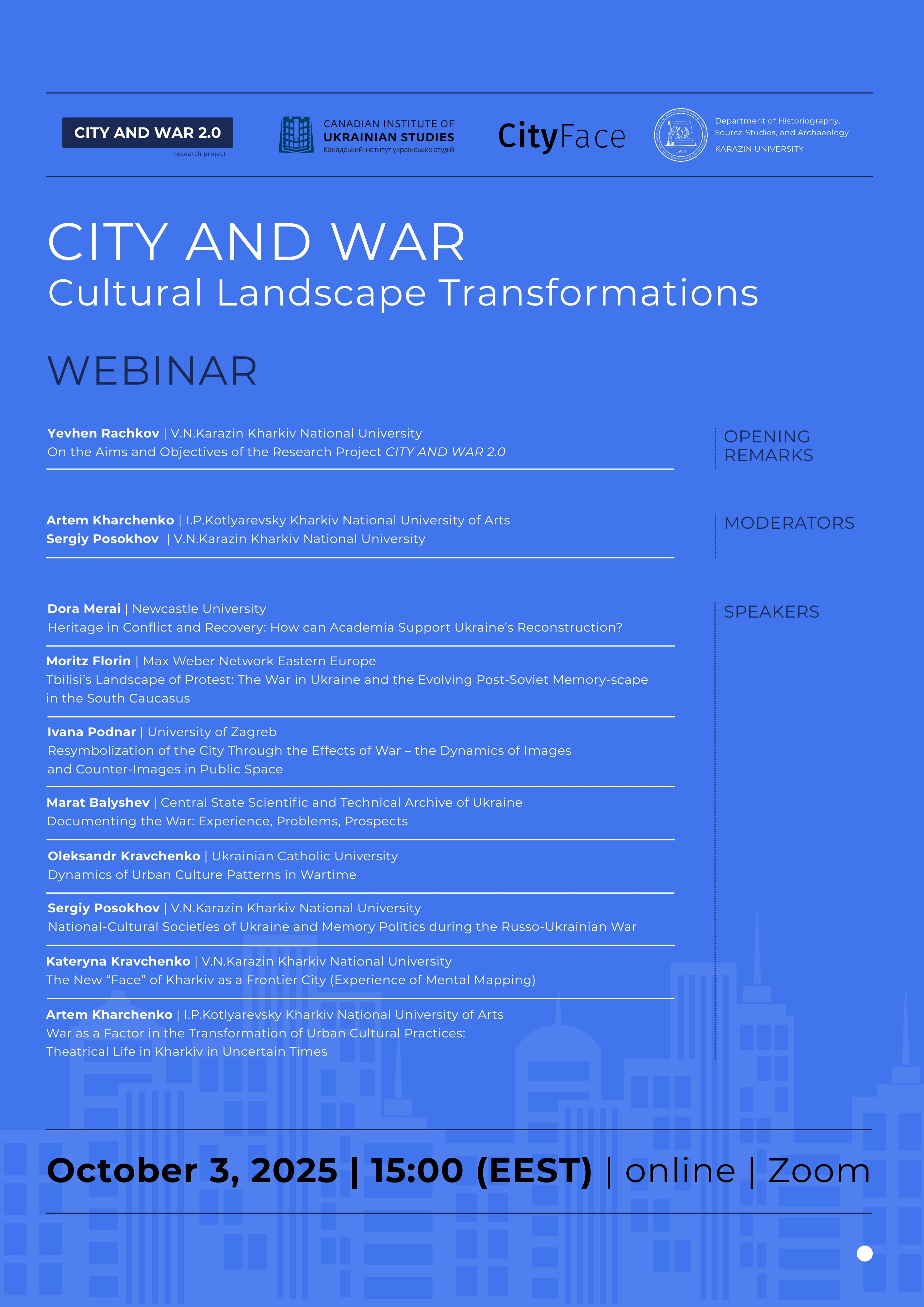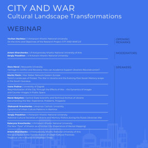 As part of the project “CITY AND WAR 2.0,” a series of webinars will explore the transformations of the cultural landscapes of the major cities of eastern and southern Ukraine during the Russo-Ukrainian War