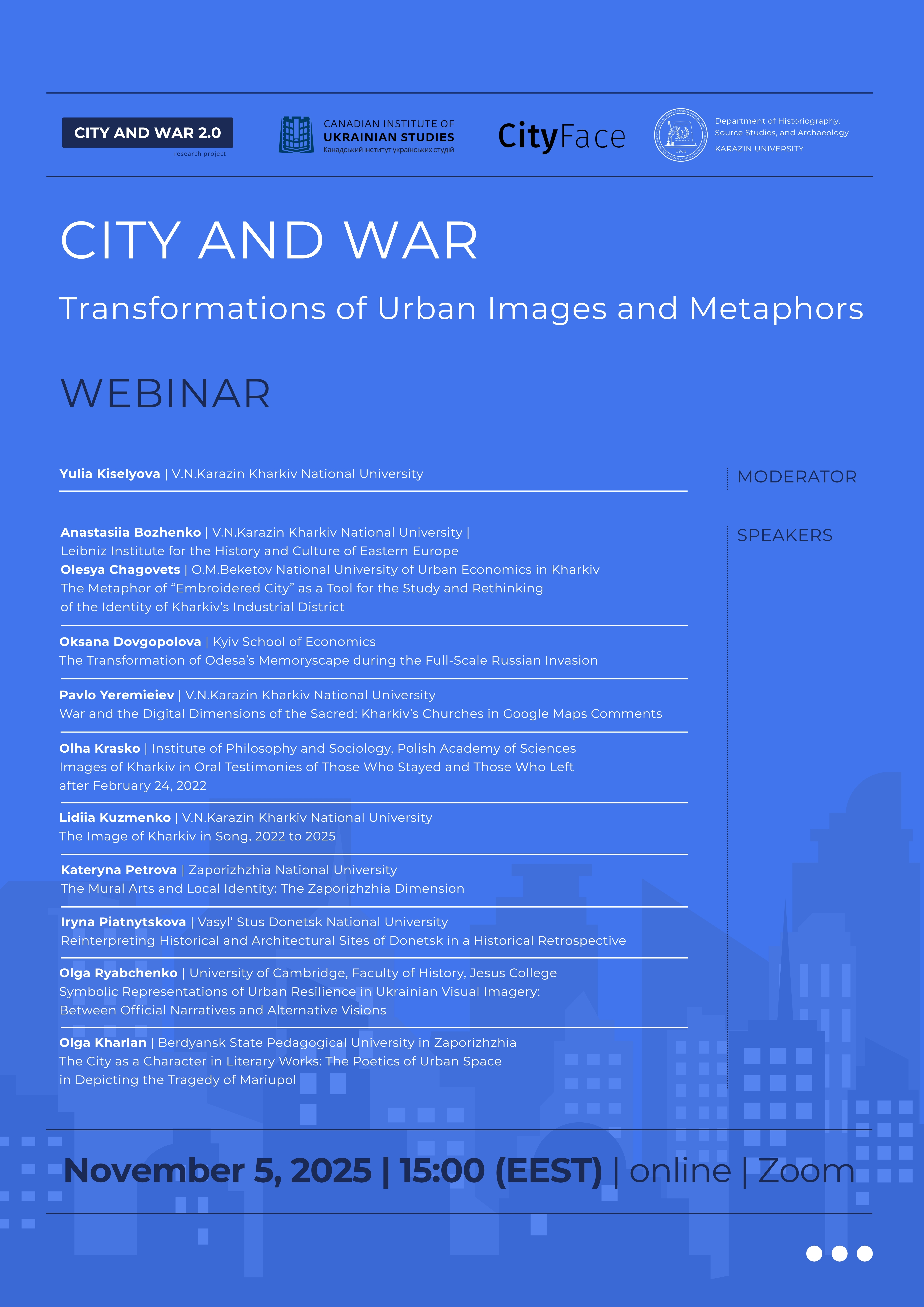 We are pleased to invite you to the upcoming webinar, “CITY AND WAR: Transformations of Urban Images and Metaphors,” organized as part of the project “CITY AND WAR 2.0.”