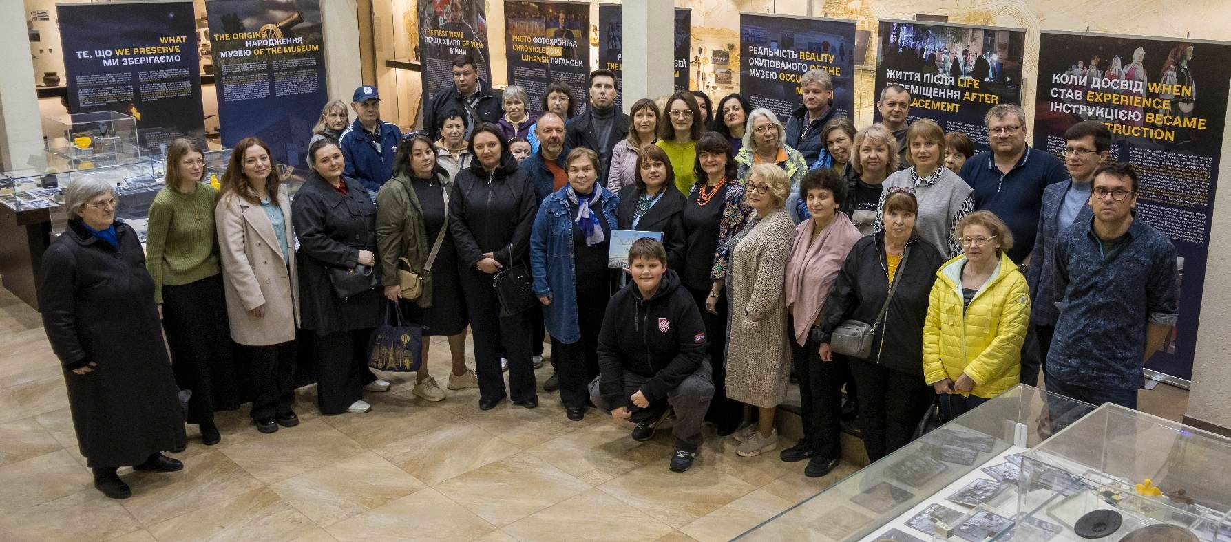 The exhibition focuses on the history of the Luhansk Regional Museum of Local Lore, which, as a result of the Russo-Ukrainian War, was displaced twice and resumed its activities each time. The event brought together representatives of Kharkiv’s museum and heritage preservation community, who shared their experiences and case studies on safeguarding and rescuing cultural heritage in wartime.